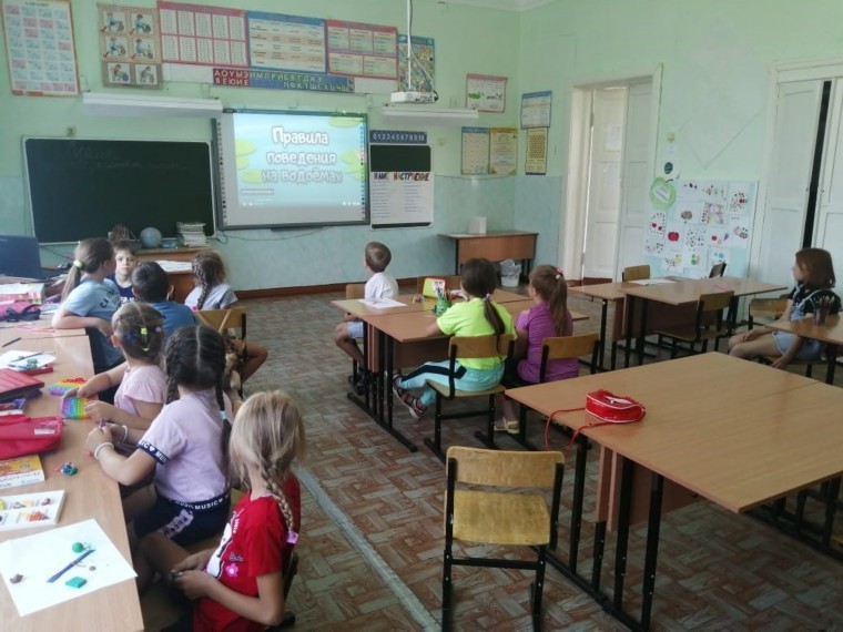 в лагере дневного пребывания «Радуга» был проведён внеплановый инструктаж о правилах безопасного поведения детей на водных объектах с воспитанниками под роспись в журнале. Дети посмотрели фильм и закрепили знания, отвечая на вопросы воспитателей.